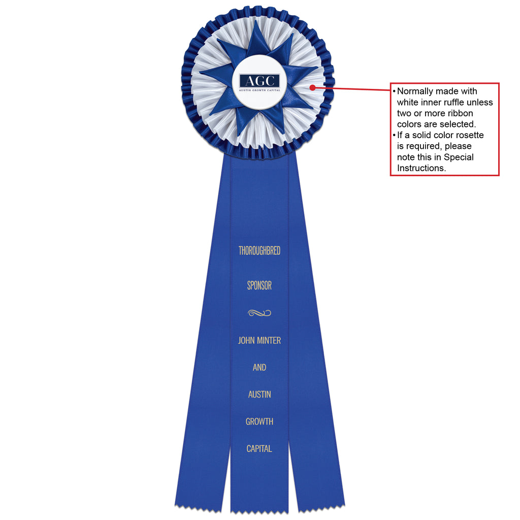 - NOTE- Orders with less than 25 rosettes per style, print, or streamer length will incur a print set-up charge. Additional set-up may apply for more information - See FAQs