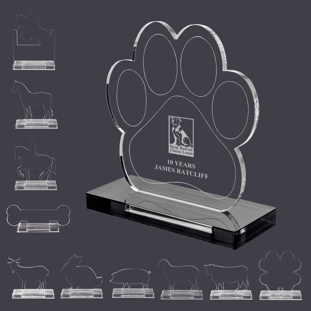 - 12 Shapes: 1/4" thick, laser engraved acrylic awards