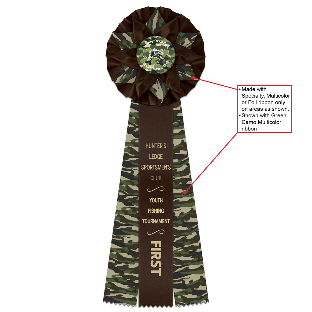 - Select from one design (multicolor, specialty or foil) for the Rosette and side streamers in areas as shown.