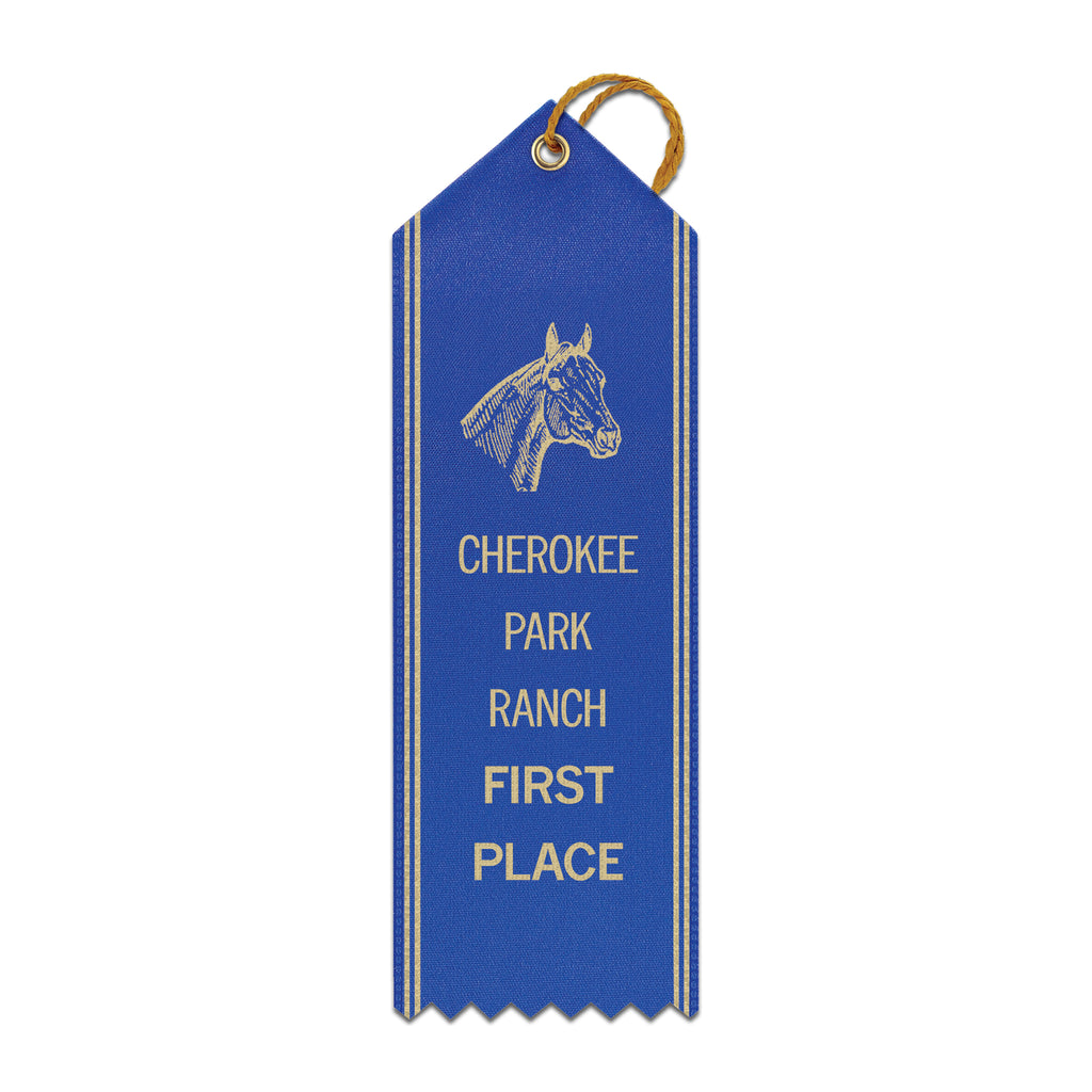 - 2” x 6” Custom Point Top Horse Show Award Ribbon With Border