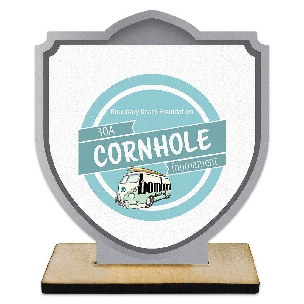 - 5" Shield Shape Birchwood Fair, Festival & 4-H Award Trophy With Birchwood Base