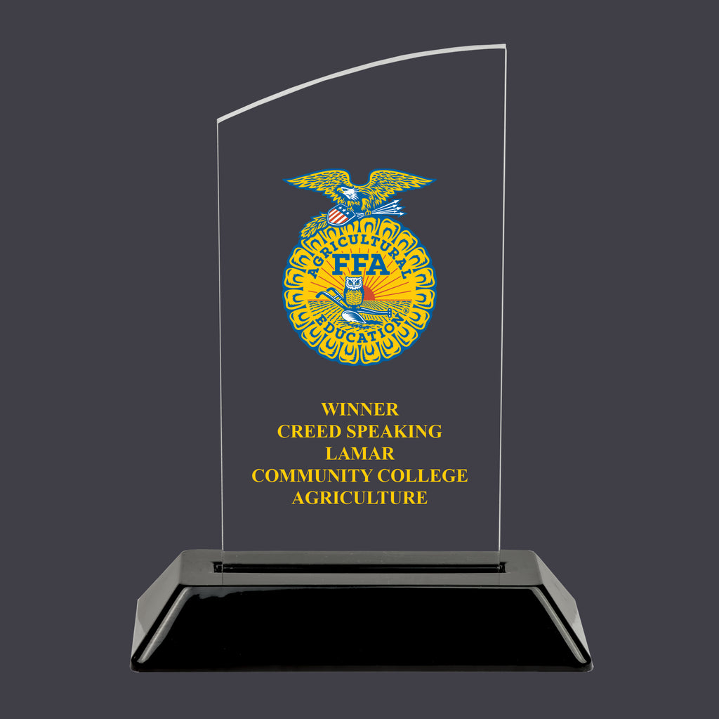 The 6-1/4" Custom Full Color Swatch Acrylic Award features high quality full color printing and a sleek black base. No set-up fees or minimum orders required. It's the perfect choice for corporate recognition, academic achievements, sports awards, employee milestones, volunteer appreciation, and special event honors.