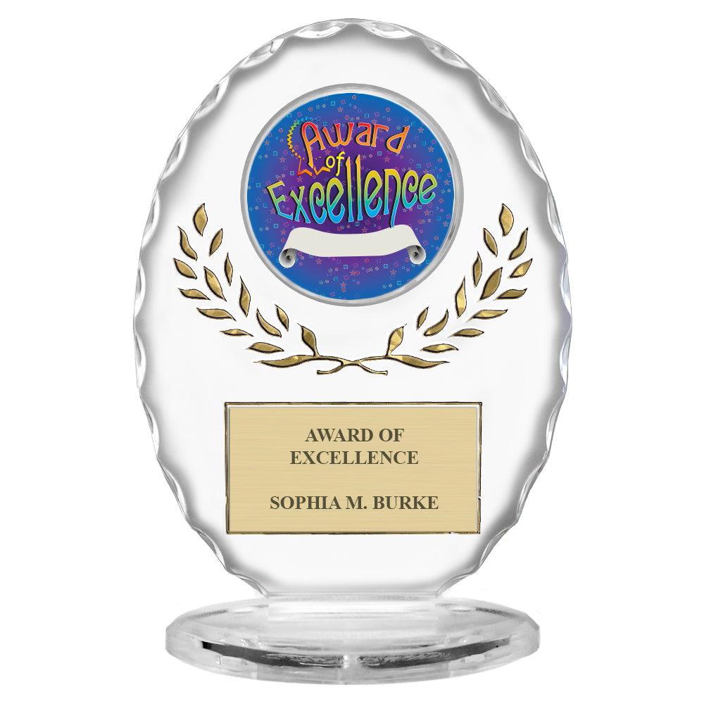 6-3/8" Free Standing Oval Award Trophy With Blue Wreath
