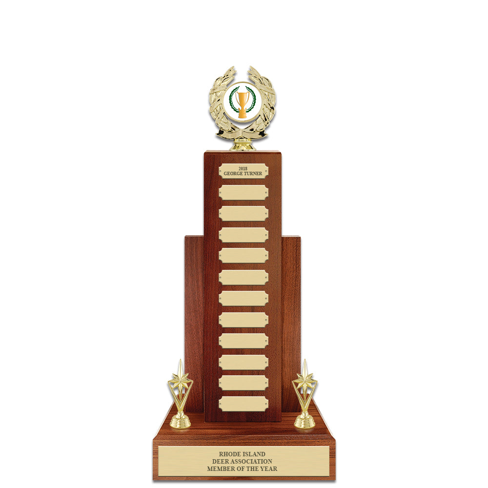 - 1 brass plate on lower tier measures 8-1/2" x 2"
