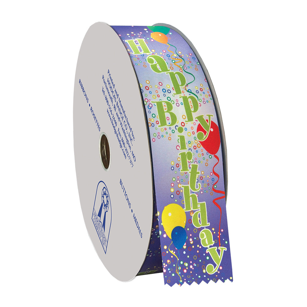- Stock 2" Wide Multicolor "Happy Birthday" Balloon Award Ribbon Roll