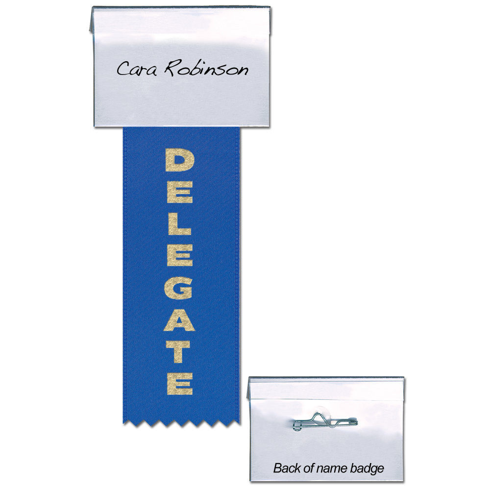- Blue ribbon with gold print