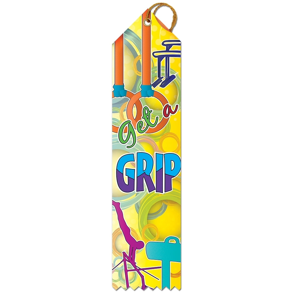 2" x 8" Stock Multicolor Point Top "Get A Grip" Award Ribbon