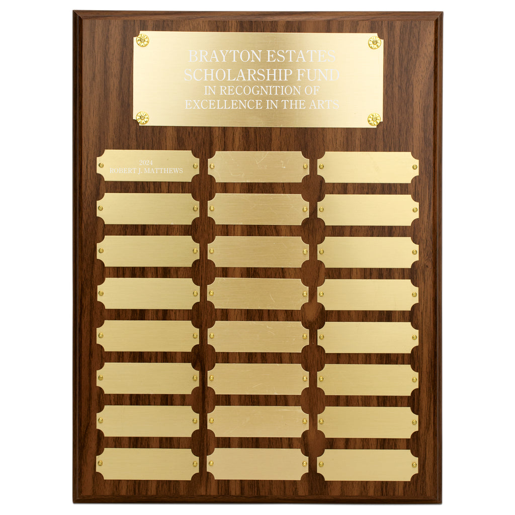 • 12" x 16" Custom Walnut Finish Perpetual Plaque
