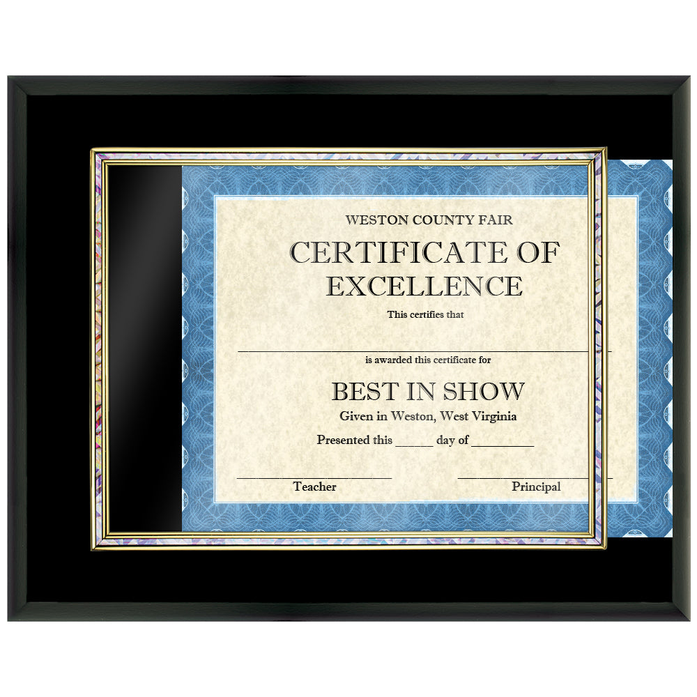 • Insert frame enables you to slide any 11"w x 8-1/2"h certificate or degree